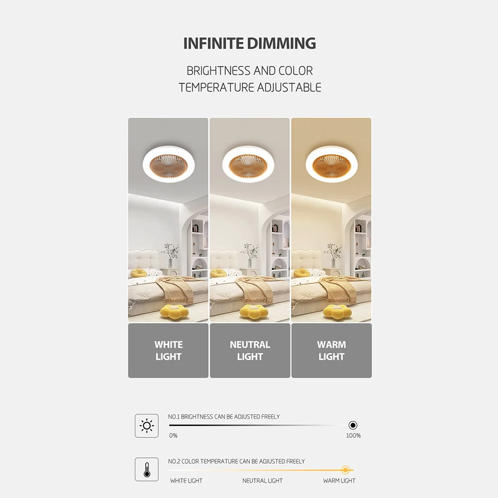 2.Adjustable Light Temperature and Brightness: The 3 speeds fan light offers three color temperatures (warm, neutral, cool) with stepless brightness adjustment, catering to both mood and eye fatigue. Create vibrant atmospheres and enjoy a fresh experience daily!