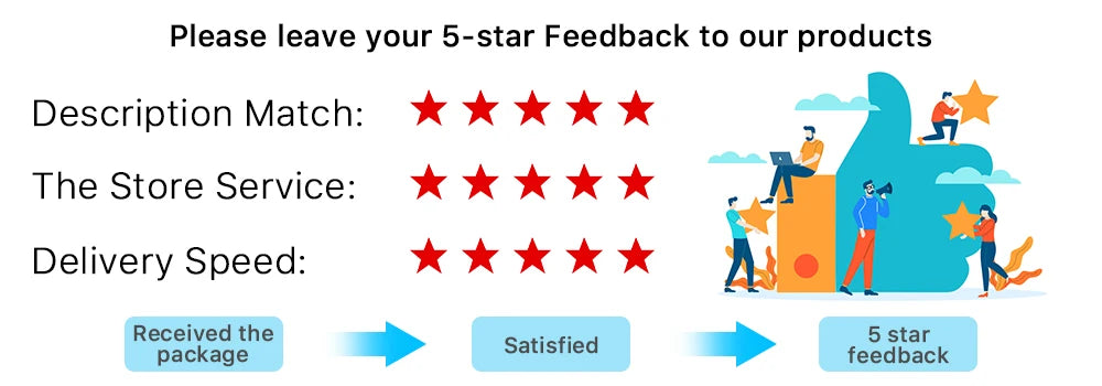 1.Your satisfaction and positive feedback is very important to us, please leave positive feedback and 5 stars if you are satisfied with our items and services.