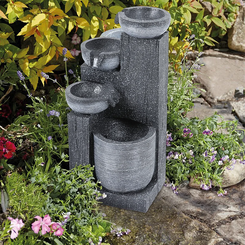 【Breeins】Rustic Outdoor Floor Water Fountain High with LED Light Cascading Bowls for Garden Patio Backyard