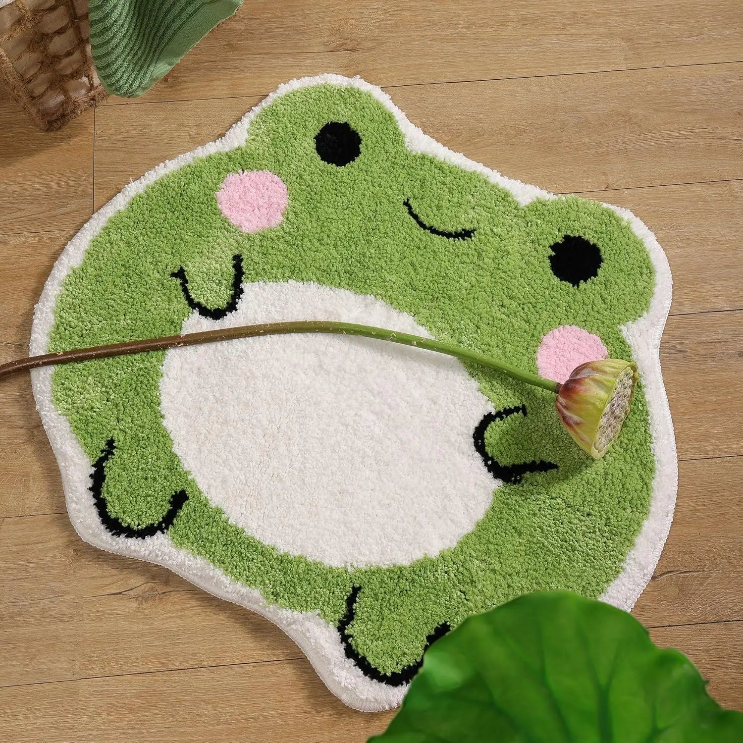 Cute Bath Mat Non Slip Frog Bath Rug for Bathroom,Luxury Absorbent Mats,Machine Washable Shaggy Soft Rugs Bathroom Decor