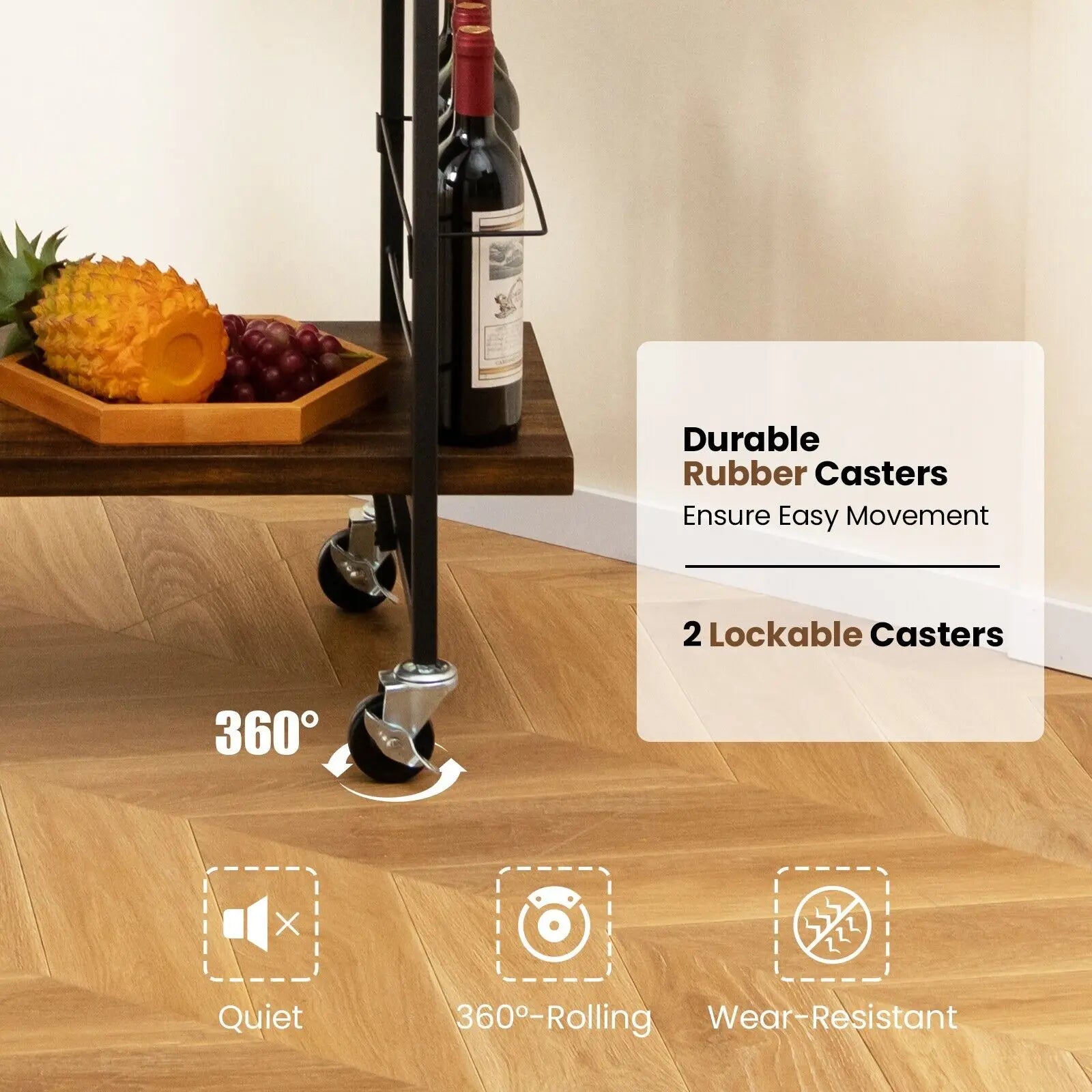 GOFLAME 2-tier Home Bar Cart Kitchen Dining Storage Mobile Cart w/Lockable Wheel
