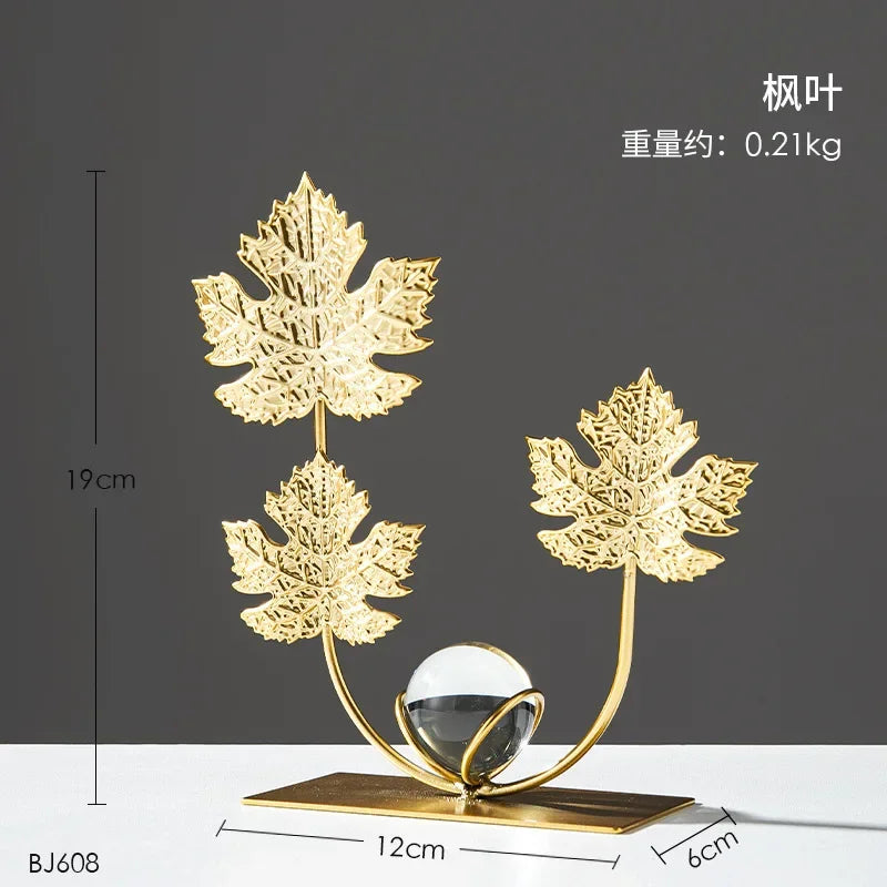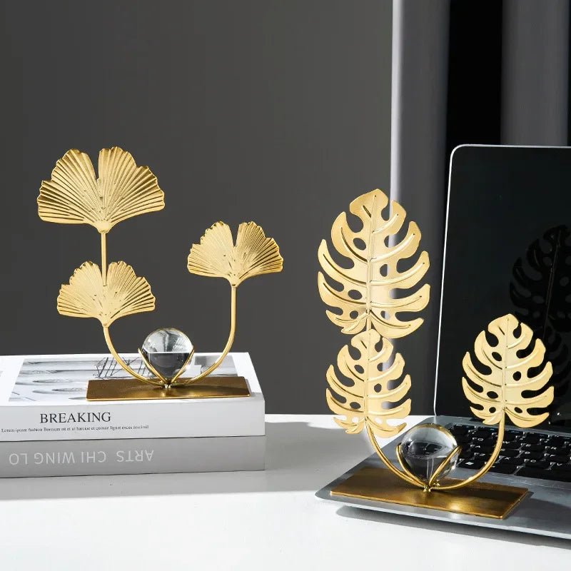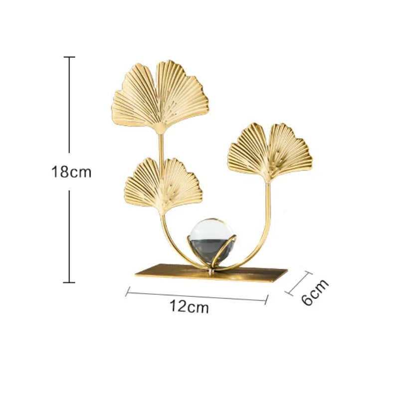 Bring elegance, harmony, and artistic charm into your space with this Gold Ginkgo Leaf Iron Craft Ornament. Inspired by nature and designed in a light-luxury Nordic style, this sculpture features beautifully sculpted ginkgo leaves paired with a crystal sphere — a symbol of peace, prosperity, and timeless beauty. Perfect for living rooms, entry tables, TV stands, office desks, and display cabinets.
