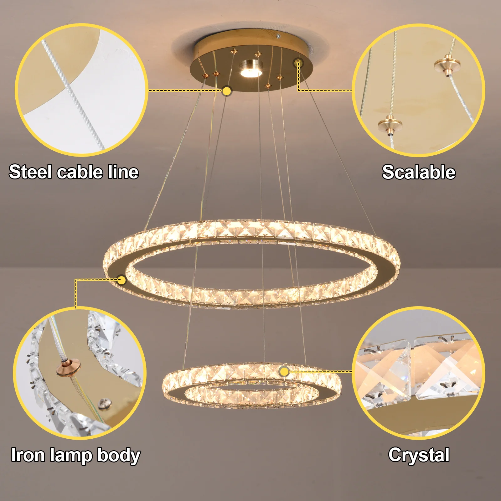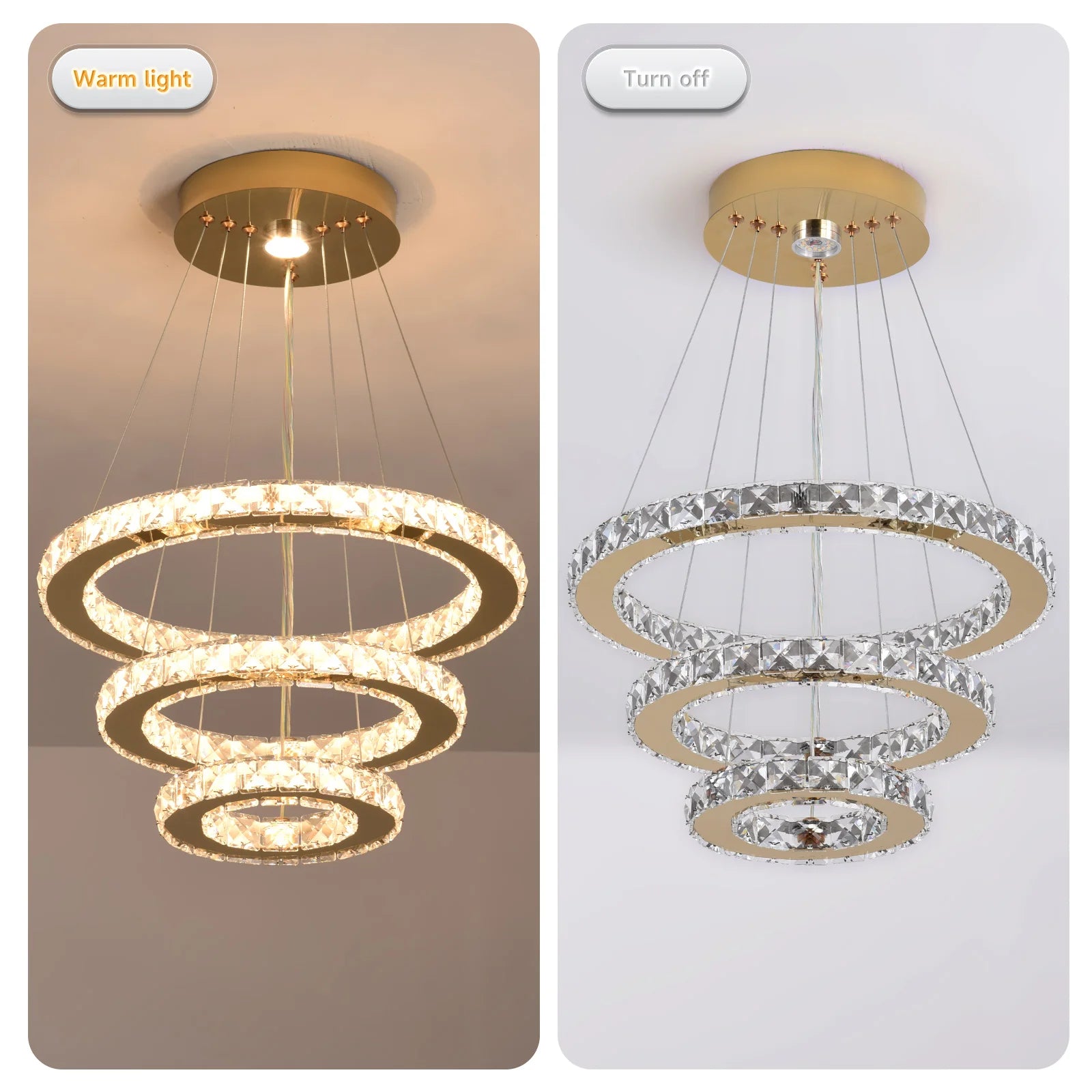 Luxury Rings Pendant Light LED Crystal Ceiling Lamp Modern Home Decor Lustre Living Dining Room Chandelier Indoor Lumin Fixture